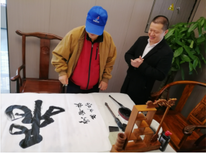 张主席在视察企业生产经营之余,在商务接待书法区还饶有兴致地提笔挥毫,为企业送上其宝贵的墨宝,“腾飞”两个字是张主席对中鹏企业的祝愿和期望,公司领导欣然接受,表示会一定潜心做好企业,不负领导厚望。